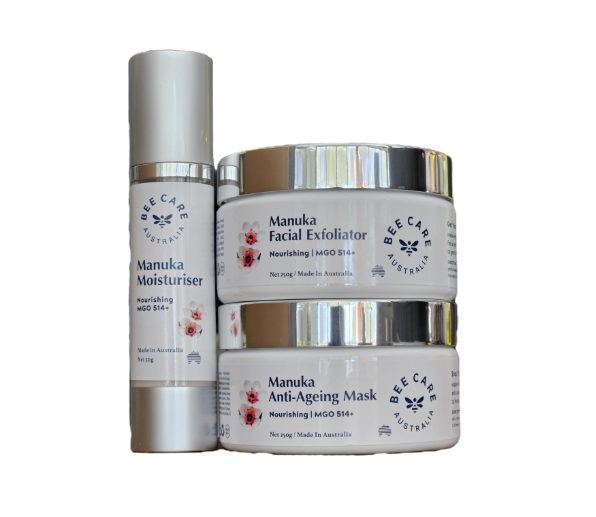 Facial pack consisting of 50g Moistuiser Pump, 250g Facial Exfoliator, 250g Ani-Ageing Mask.